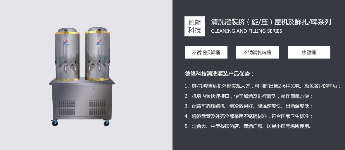 青島德隆自1995年創(chuàng)建以來(lái),始終秉承創(chuàng)新與發(fā)展的優(yōu)良傳統(tǒng),依靠技術(shù)與服務(wù)贏(yíng)得客戶(hù)的信賴(lài)與尊重。在貼標(biāo)機(jī)向?qū)W⒒?、多行業(yè)領(lǐng)域發(fā)展并成就了中國(guó)異型瓶貼標(biāo)市場(chǎng)的經(jīng)典之后,應(yīng)市場(chǎng)不斷變化的客戶(hù)需求,優(yōu)化產(chǎn)品結(jié)構(gòu),引進(jìn)吸收國(guó)內(nèi)外的流體包裝設(shè)備理念,在貼標(biāo)機(jī)專(zhuān)業(yè)化地位穩(wěn)固的前提下,逐步實(shí)現(xiàn)關(guān)聯(lián)產(chǎn)品的多元化。 目前,青島德隆已經(jīng)成為國(guó)內(nèi)能同時(shí)滿(mǎn)足圓瓶、方瓶、扁瓶、錐度瓶、球形瓶、定位瓶等瓶型的高、中、低速多功能冷(熱)膠貼標(biāo)領(lǐng)域的廠(chǎng)家。隨著碼/卸(瓶/罐)垛機(jī)、沖瓶機(jī)、灌裝擠(旋/壓)蓋機(jī)、全自動(dòng)紙箱包箱設(shè)備、排序機(jī)、機(jī)器人碼/卸垛設(shè)備、激光噴碼機(jī)的運(yùn)行成功,一個(gè)真正的流體包裝設(shè)備方案解決專(zhuān)家已經(jīng)成熟。 青島德隆集團(tuán)的···......